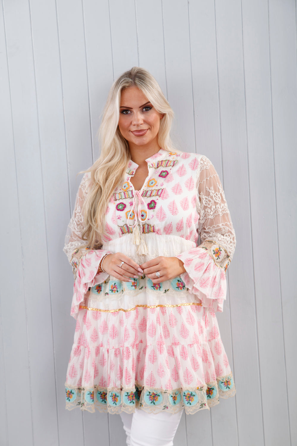 Gorgeous tunic with delicate detail and colourful beading throughout.