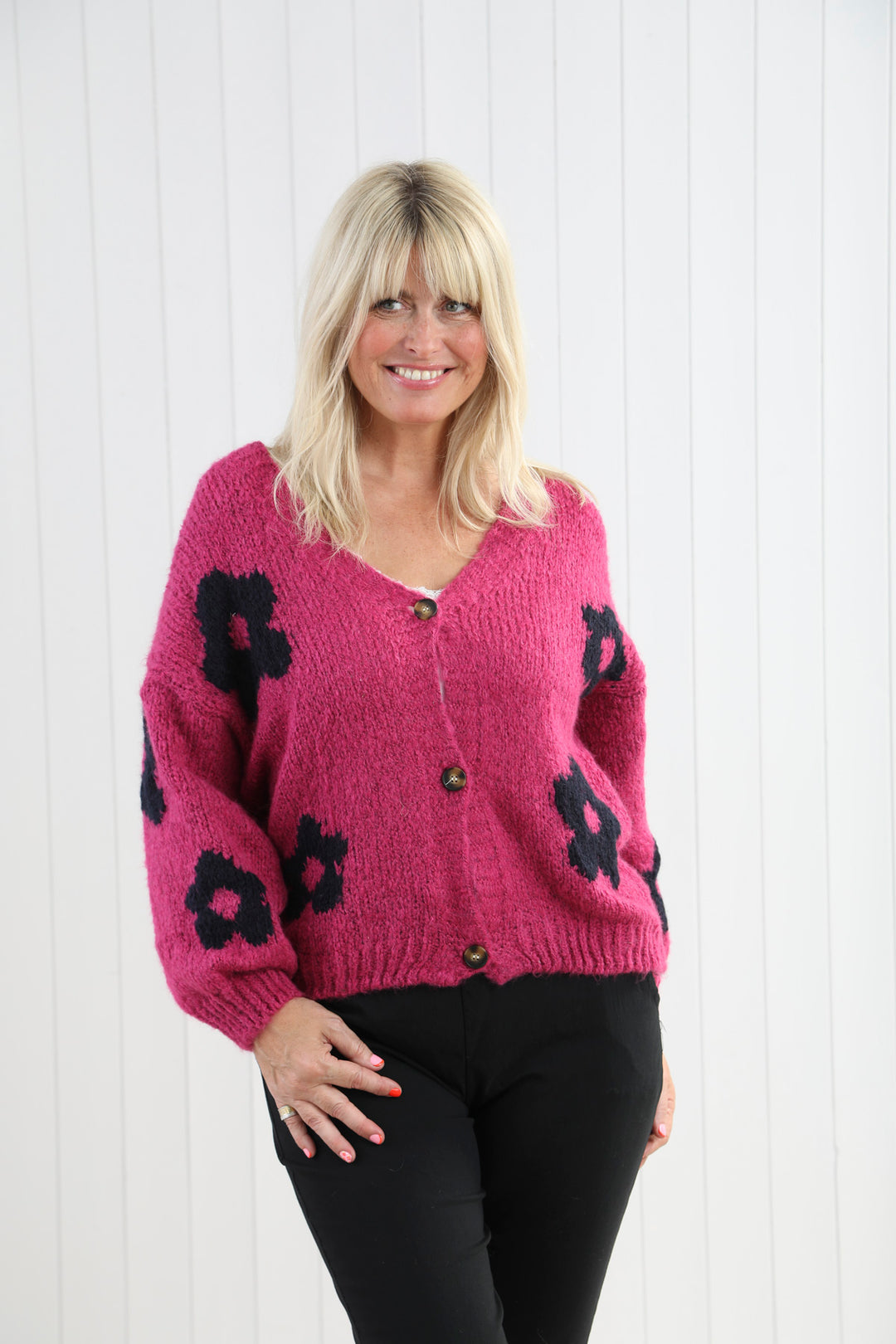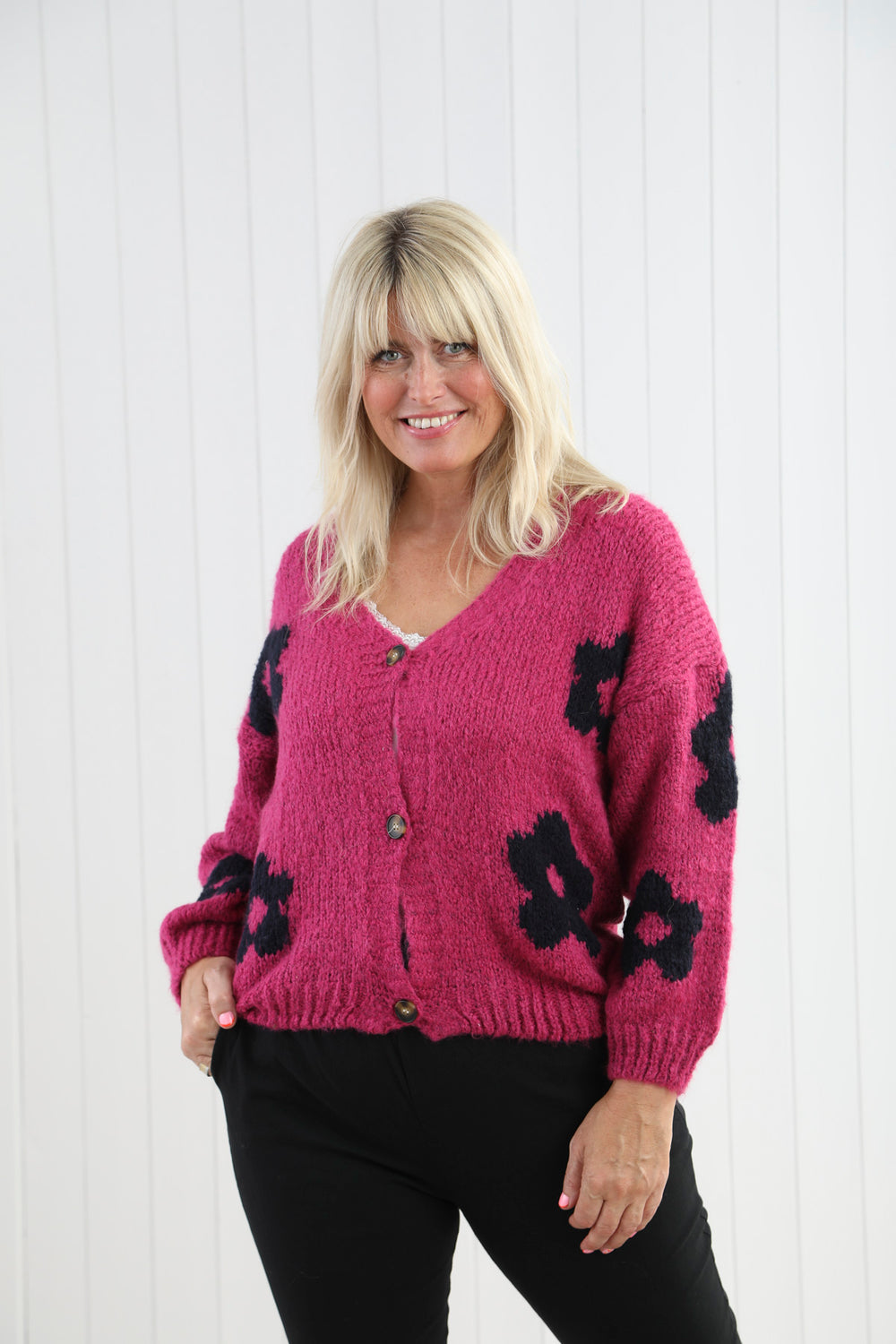 Florentina Flower Knit Cardigan Pink