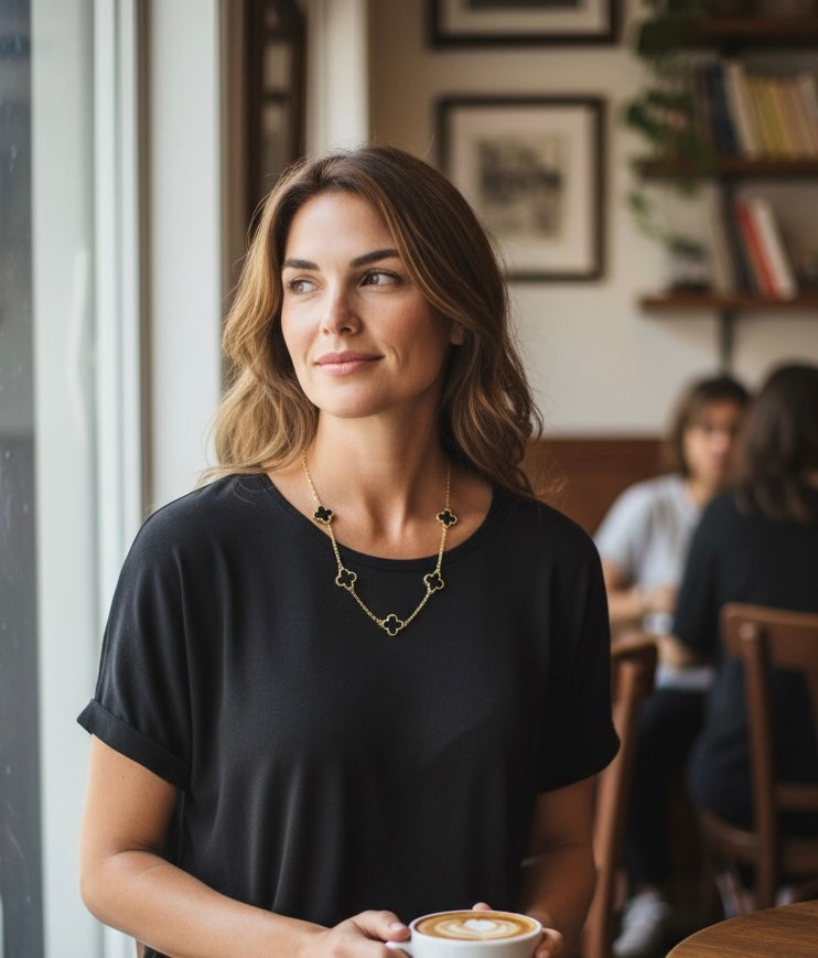Clover Necklace Short Gold/Black
