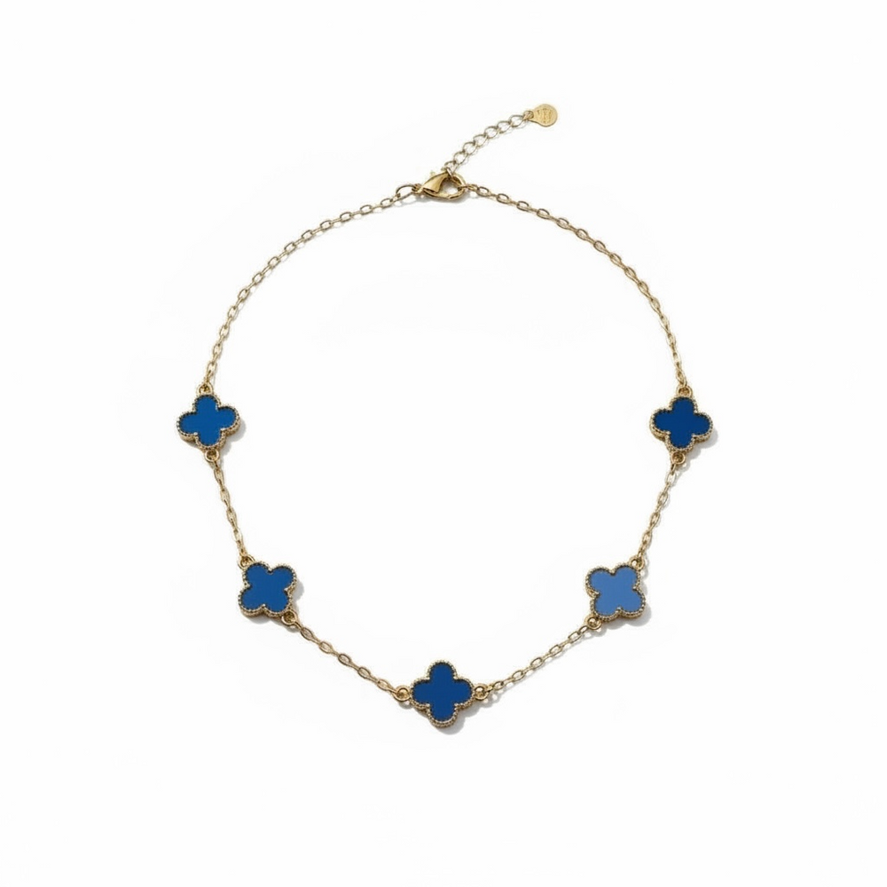 Clover Necklace Short Gold/Royal Blue
