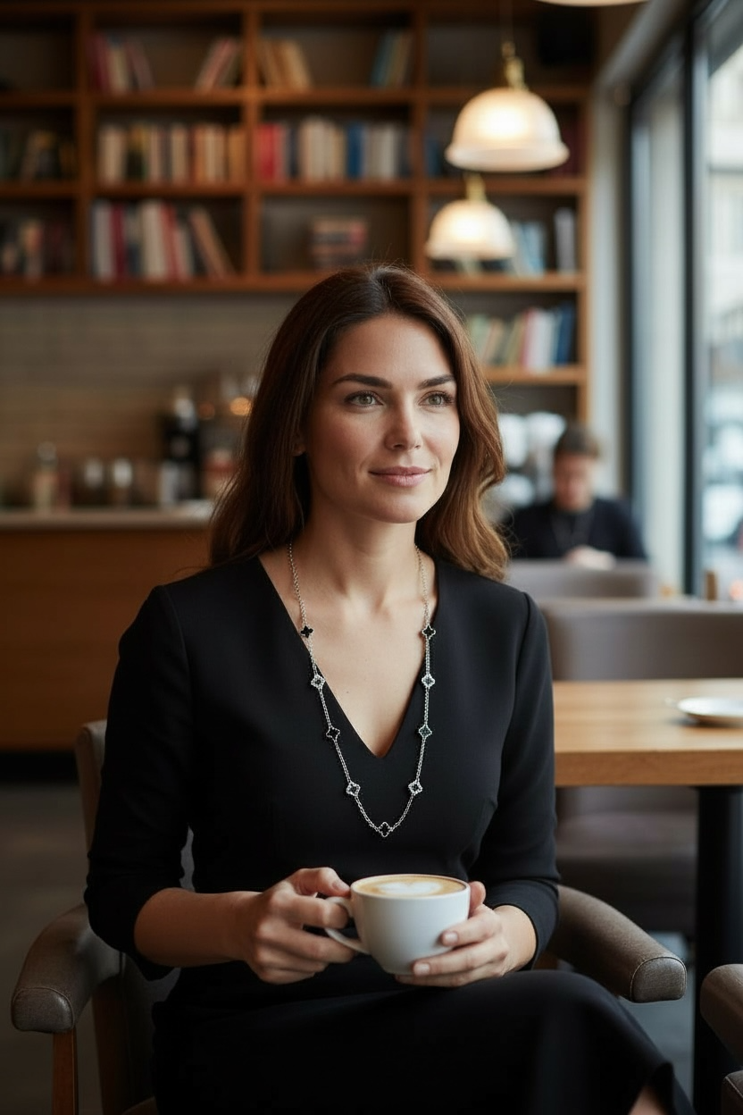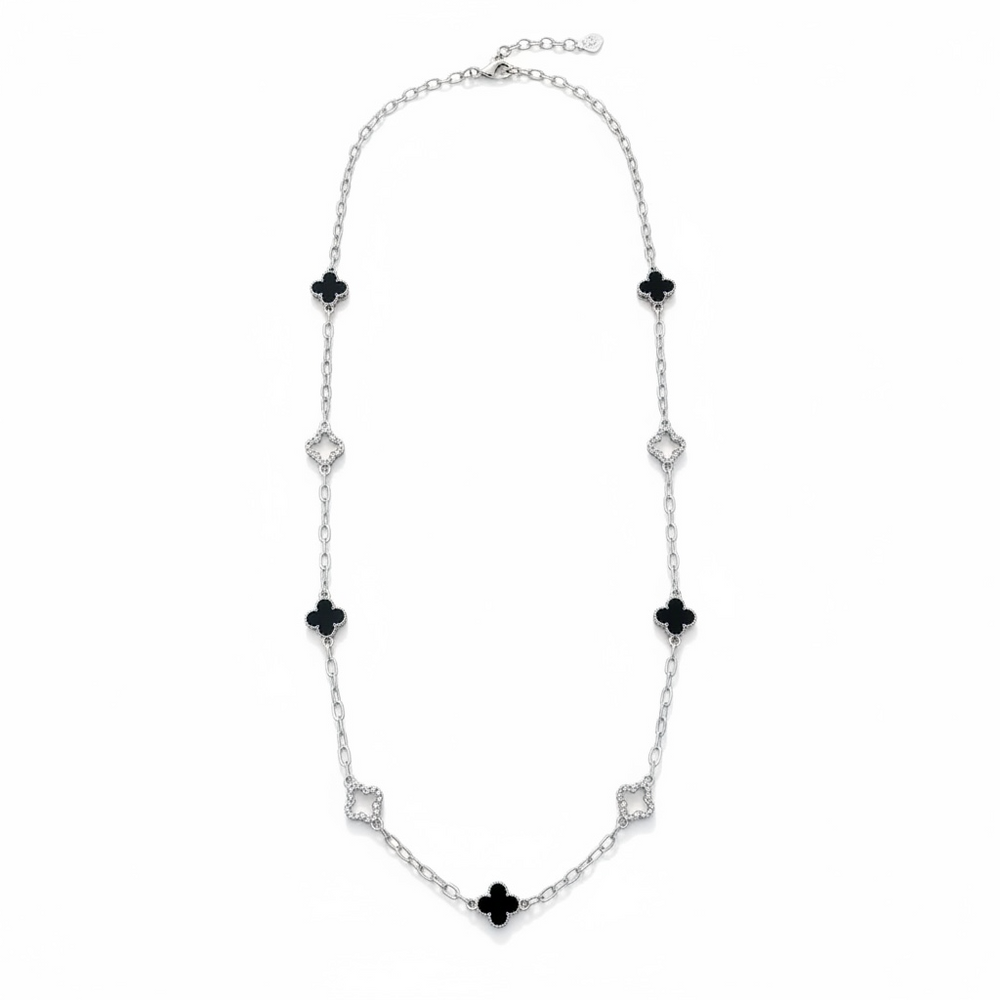 Clover Necklace Long Silver Black/Diamante