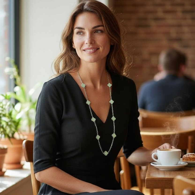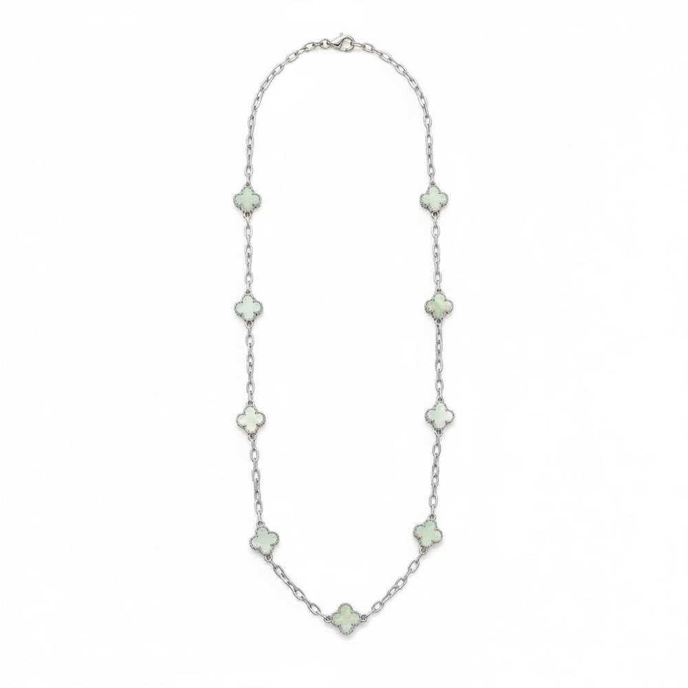 Clover Necklace Long Silver/Sage