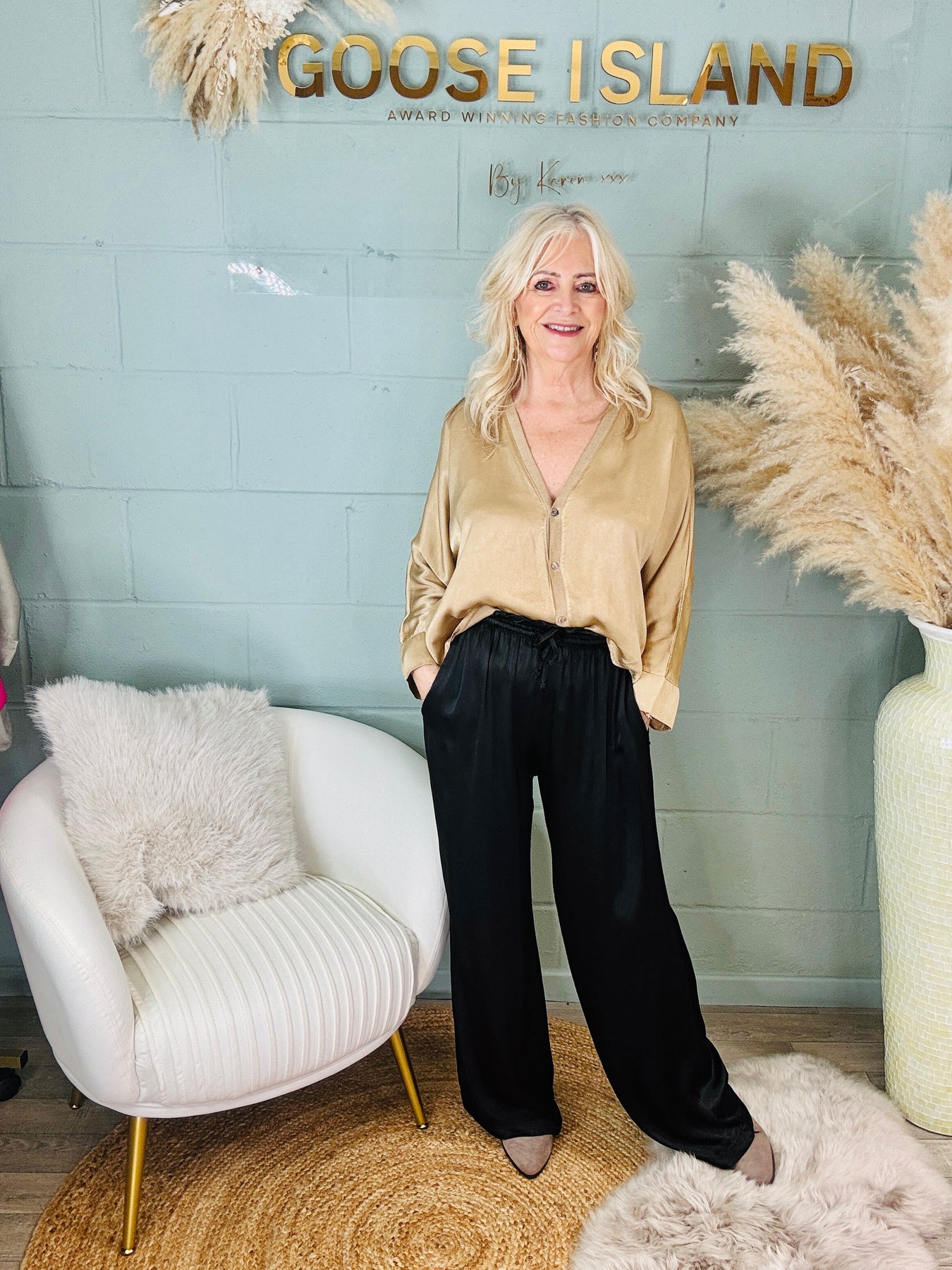 Relaxed, floaty and effortlessly chic, the Orietta Silky Trousers are crafted in Italy from beautifully soft viscose with a subtle silky sheen. The wide leg silhouette drapes fluidly for an easy, elegant feel, while the elasticated waistband with adjustable drawstring keeps them comfortable and flattering all day long.