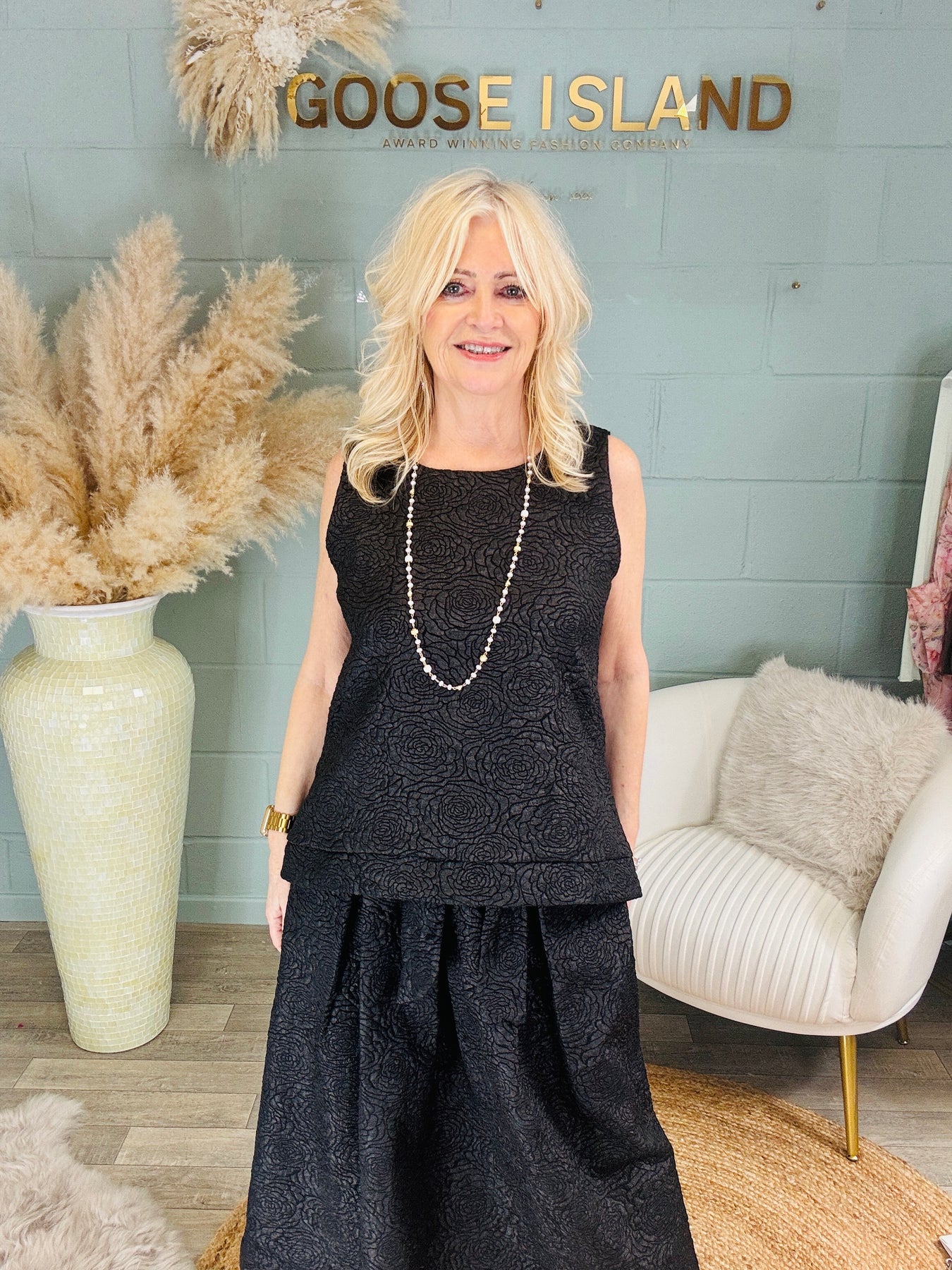 Style with the matching textured skirt for a beautifully coordinated look — matching skirt available.