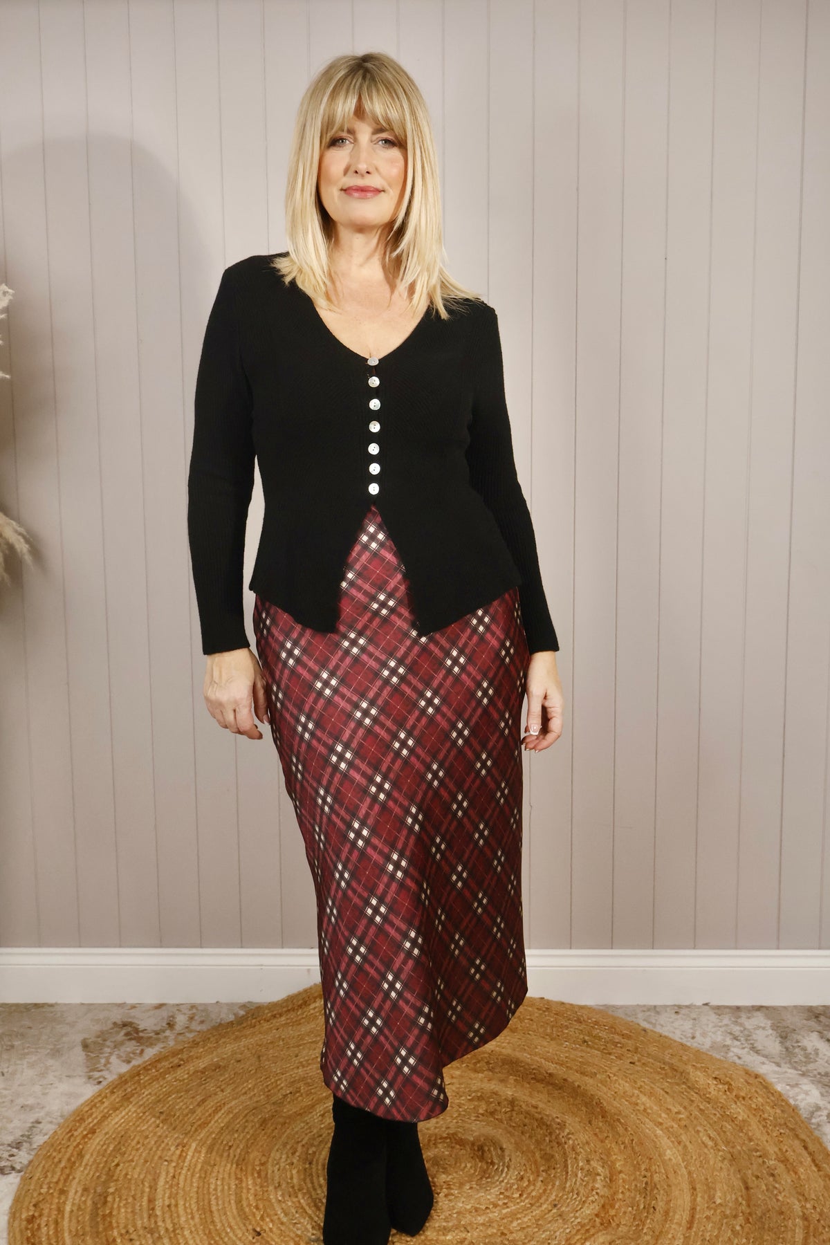 A lightweight checked skirt with an elasticated waist for comfort and an effortless fit. Wear with knitwear and boots for a relaxed daytime look or dress up with a blouse for evening.
