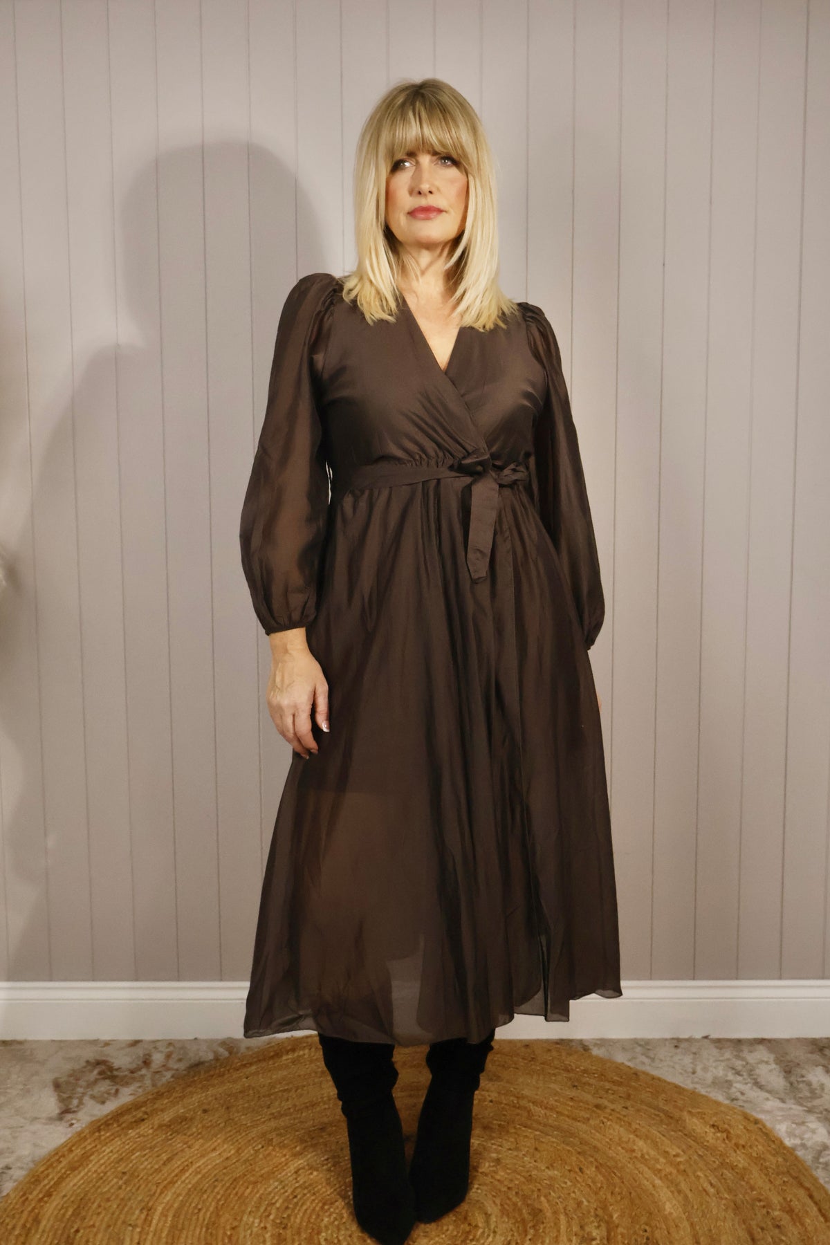 Chic, floaty and full of charm, the Flavia Dress is a timeless piece with a modern twist. Crafted in a soft sheer Tencel blend, it catches the light beautifully and feels effortlessly elegant. The matching belt defines your waist, while the puff sleeves and flowing skirt add a touch of romantic Italian style.