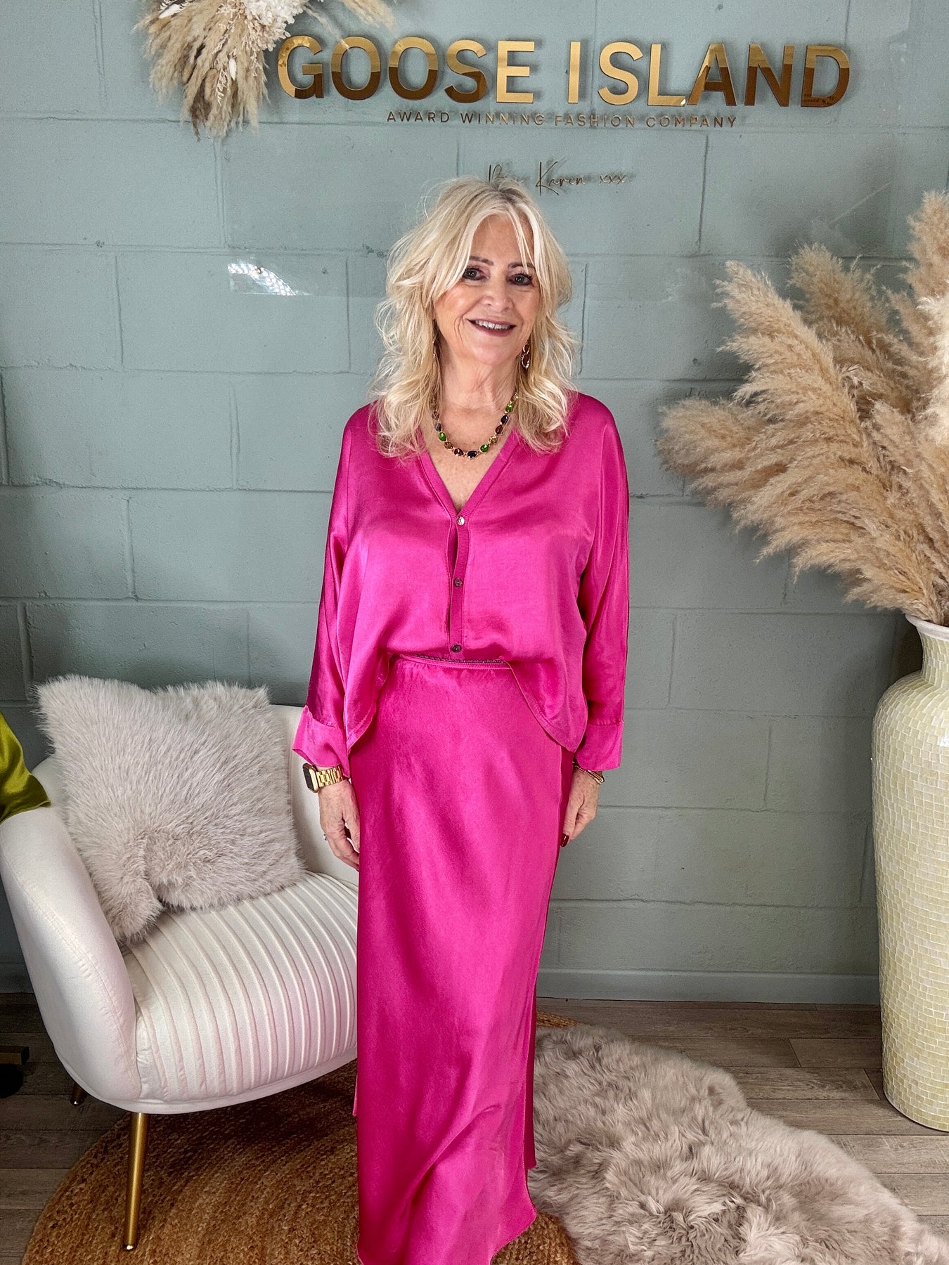 Orietta Silky Skirt Fuchsia