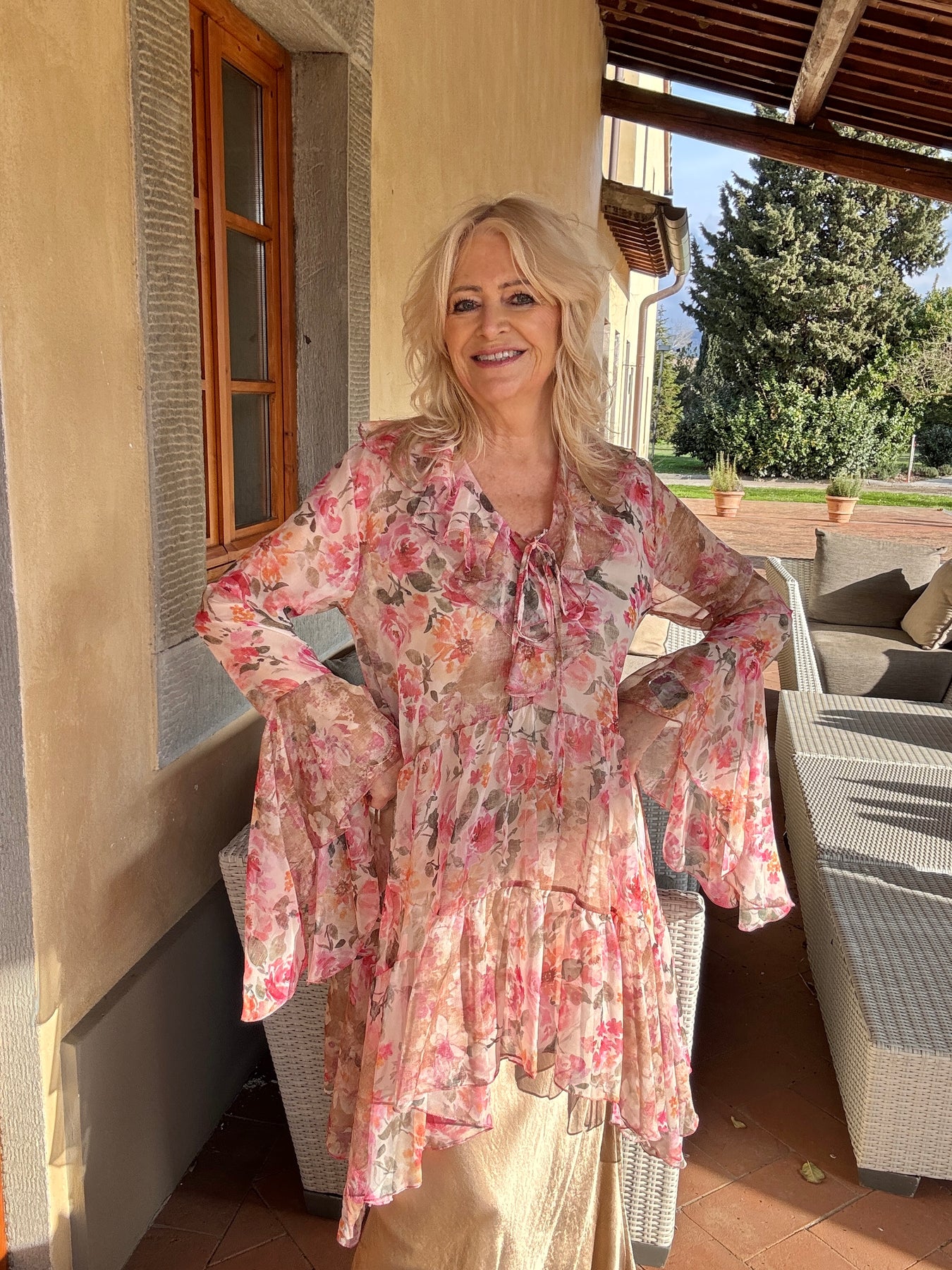 This beautifully boho-inspired tunic is all about effortless femininity. Crafted in a lightweight sheer fabric with a soft floral print, it floats gently over the body with pretty tiered detailing and statement fluted sleeves. Designed to be worn as a set, it comes complete with a separate long cami featuring adjustable straps for comfort and coverage.