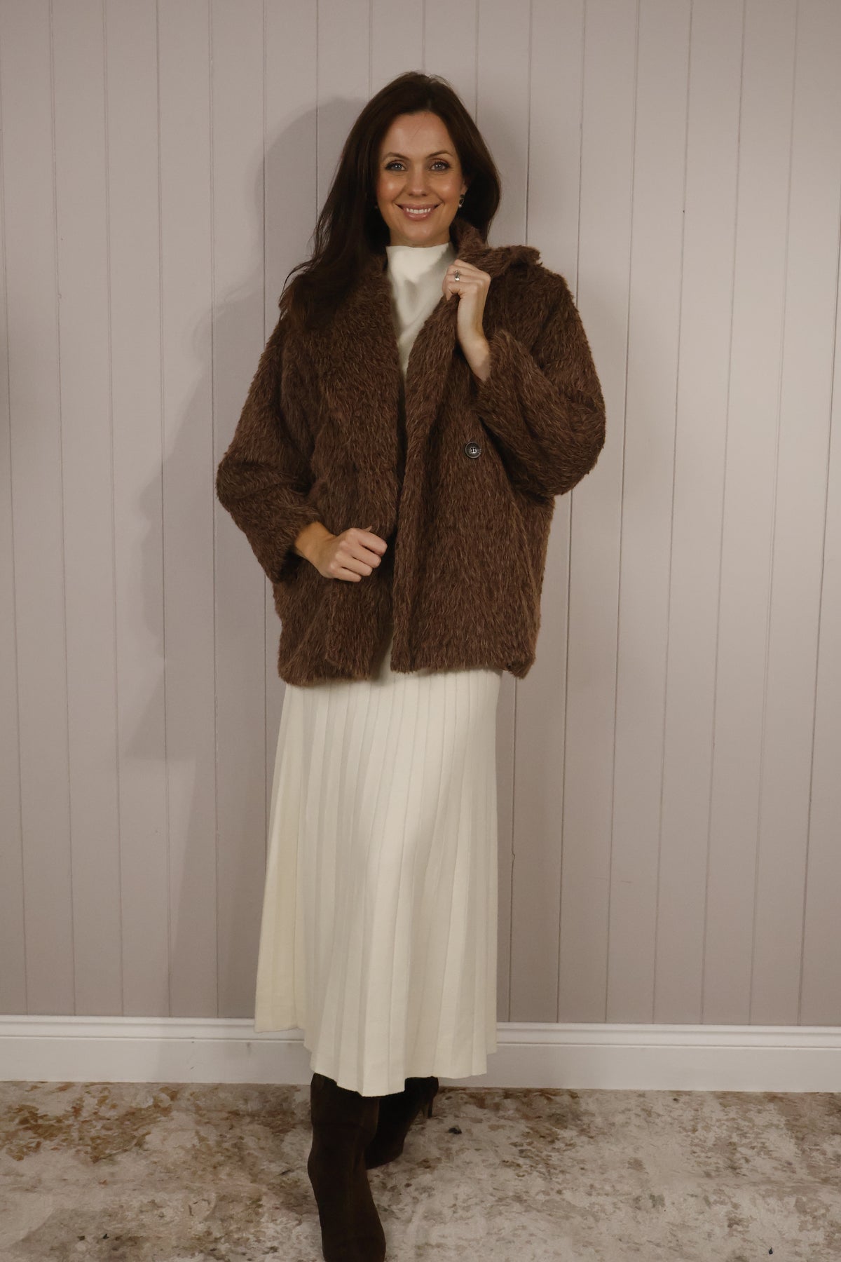 Stella Faux Fur Coat Chocolate