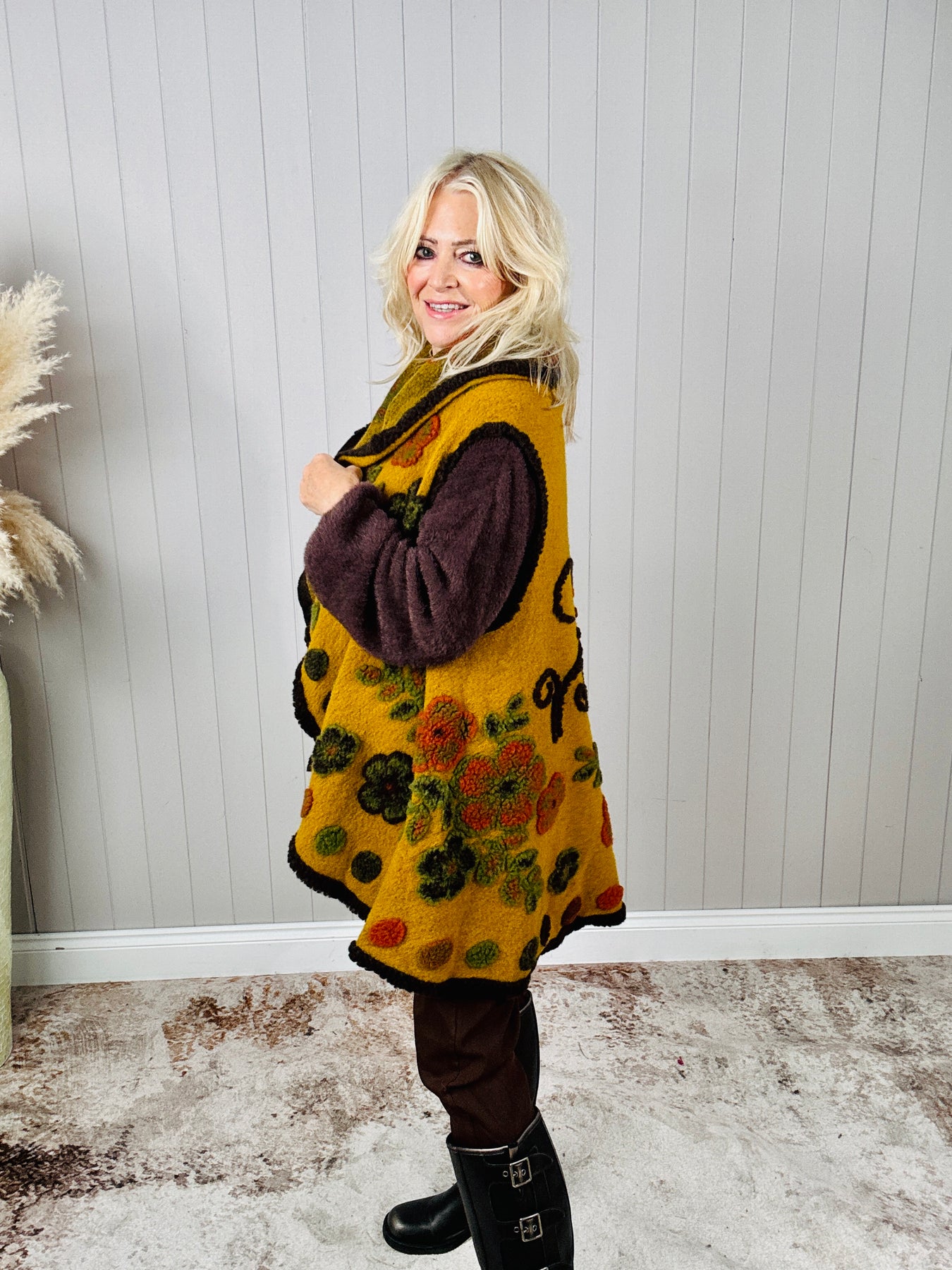 Made in Italy from a soft wool blend, it features a beautiful floral and spot design with a contrast pink trim, creating a statement look that’s both cosy and stylish.