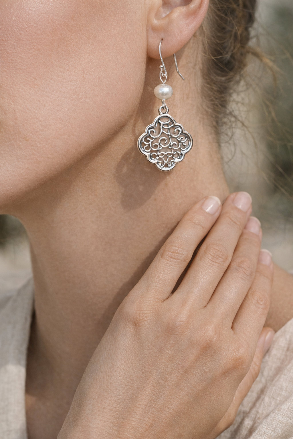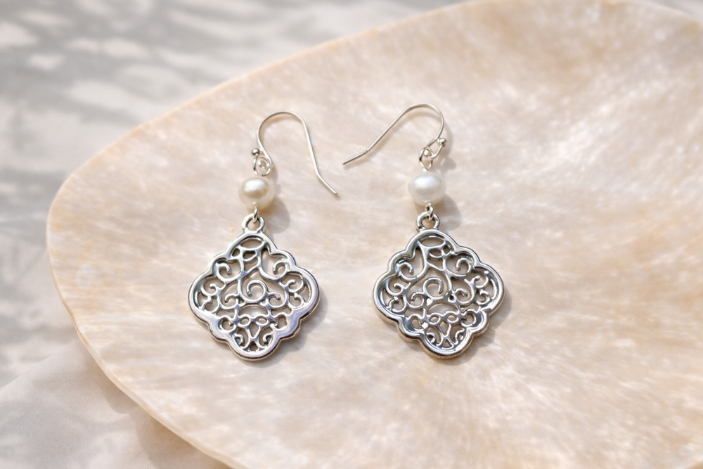 Evie Filigree Pearl Earrings Silver