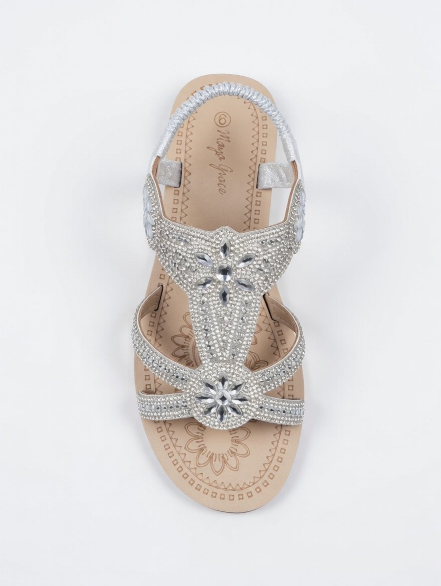 Our gorgeous Pietra sandals add just the right touch of sparkle to any outfit. They're beautifully decorated with lots of twinkling crystals and pretty flower details that catch the light beautifully. The straps cross over your foot in a supportive way for a secure fit, while the comfy medium wedge sole gives a gentle lift and makes them easy and comfortable to walk in all day long.