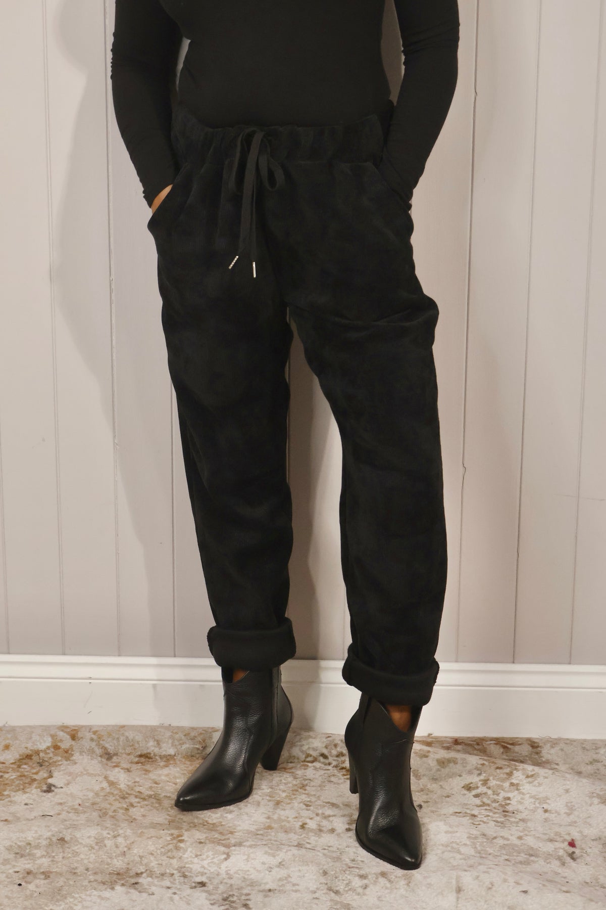These super-soft chenille magic pants are the perfect mix of comfort and style. Designed in Italy, they have a relaxed fit with an elasticated waistband and drawstring for all-day wear. The rich chenille fabric has a velvety touch, making them cosy yet chic.