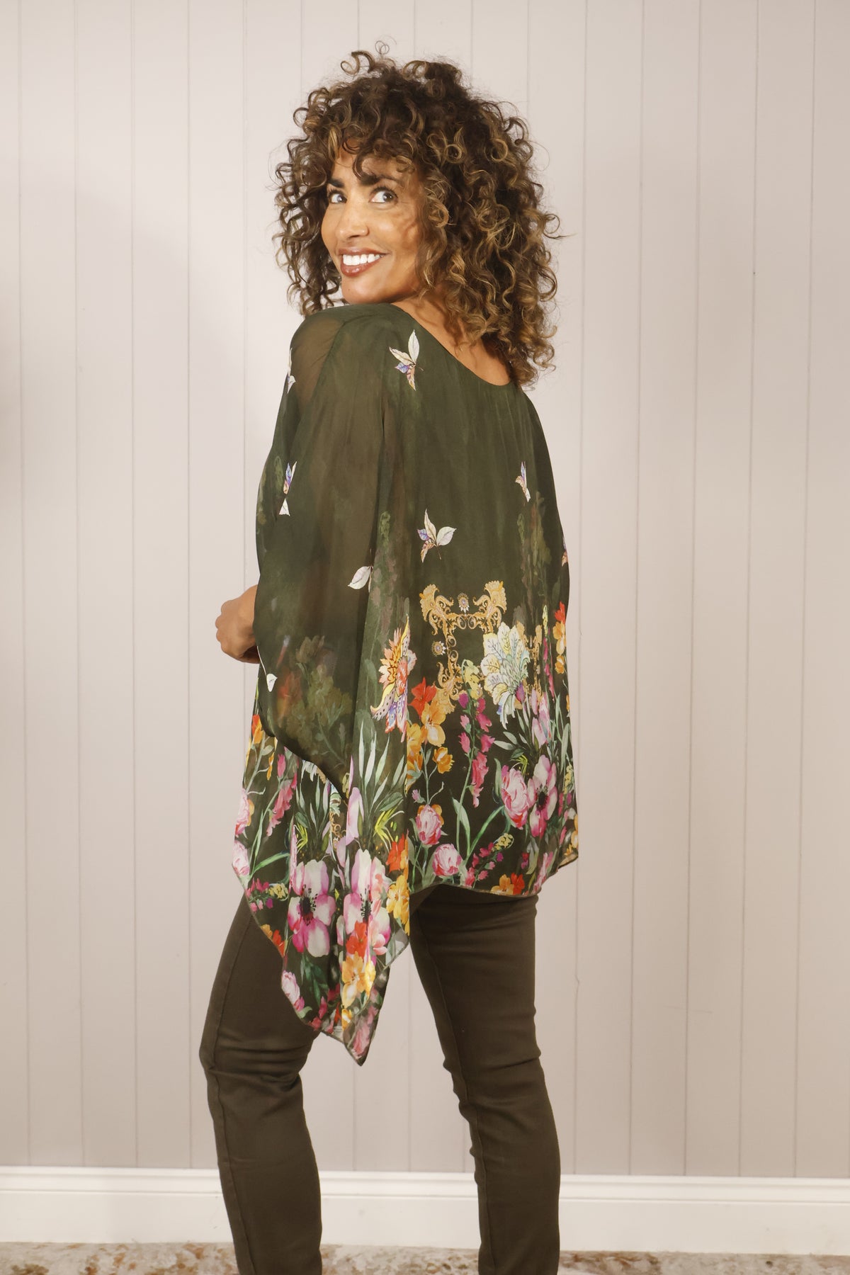 Add a touch of effortless Italian elegance to your wardrobe with our Sammie Silk Floral Top. Crafted in Italy, this beautifully draped piece combines a luxurious silk/viscose blend with a bold floral and butterfly print that pops against the black backdrop. The floaty overlay silhouette is flattering on all shapes, designed to skim and move beautifully as you do.