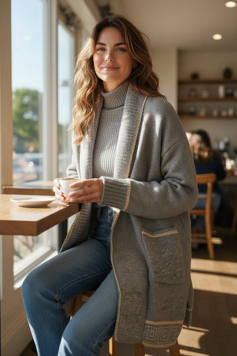 Relaxed edge-to-edge silhouette • Length approx: 85cm