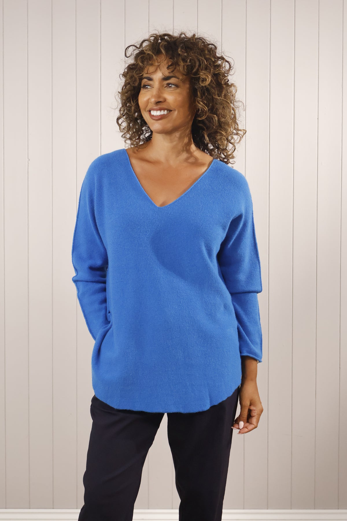 Add a pop of colour to your wardrobe with this beautifully soft Italian knit. The Anabelle features a flattering V neckline, relaxed drape and an easy curve fit — perfect for effortless everyday style. Available in 8 gorgeous colours, so you can choose your favourite… or collect a few!