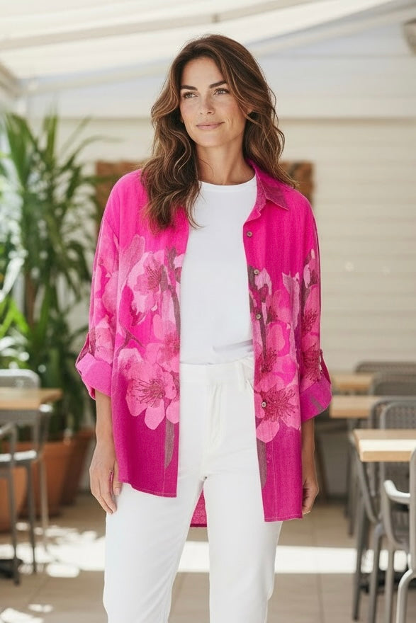 Linen Floral Shirt Fuchsia