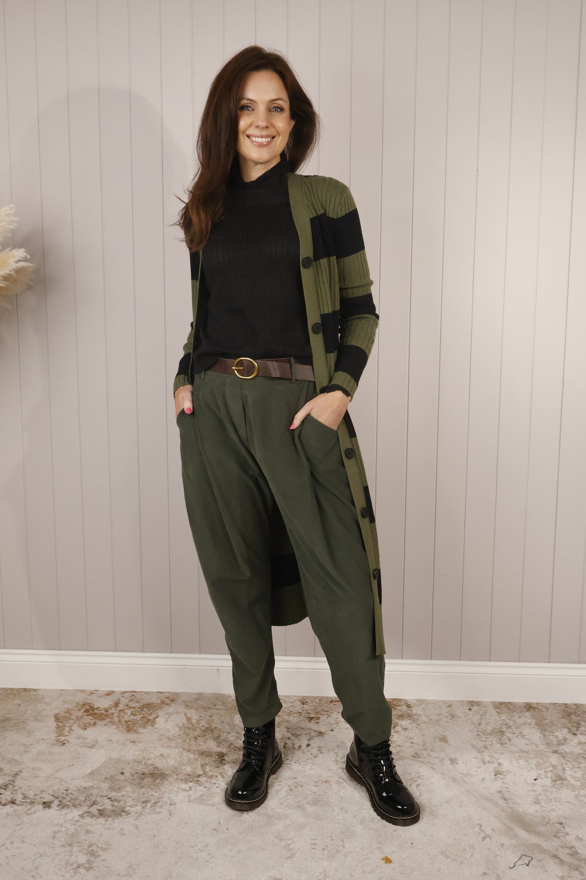 Belted Cord Trousers Khaki
