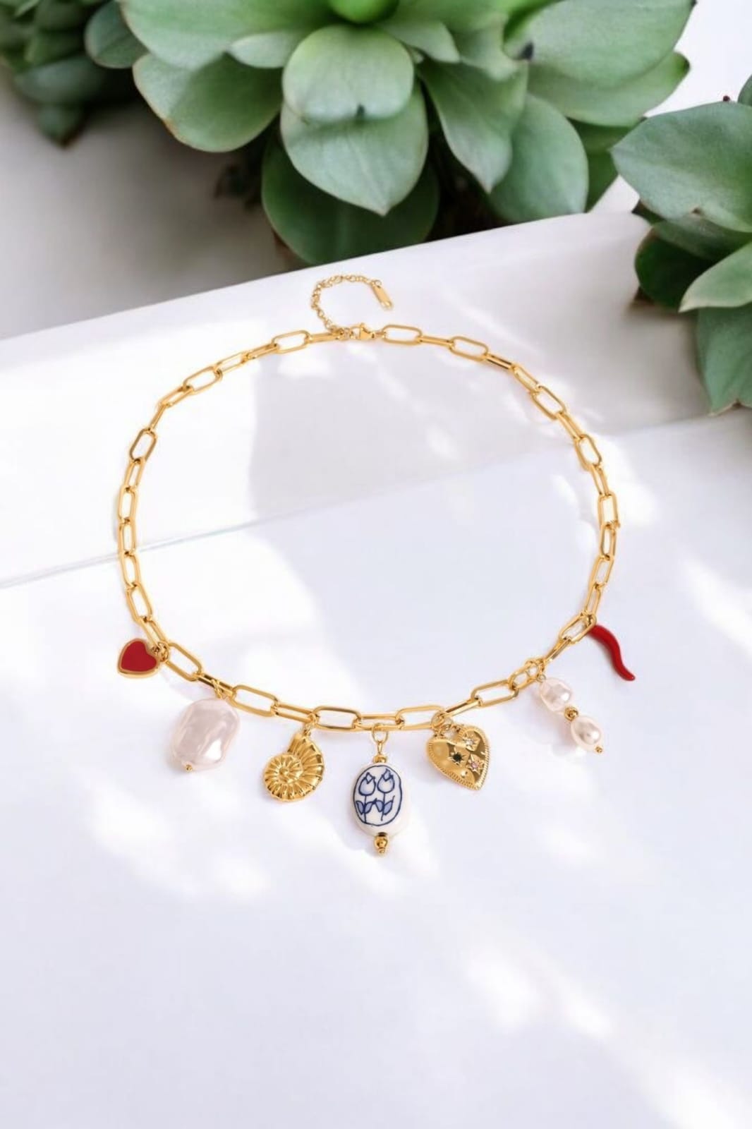 Multi-detail charm necklace – features a curated mix of ocean-inspired charms for a rich, layered look